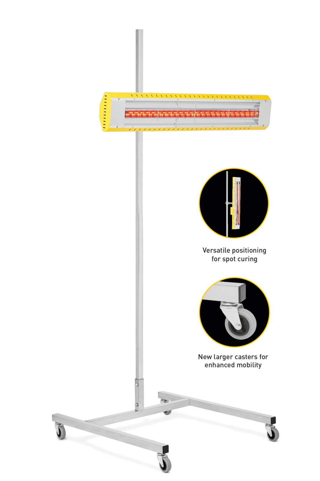 - Heavy-duty 6′ stand enables product to accommodate curing of hoods and roof lines