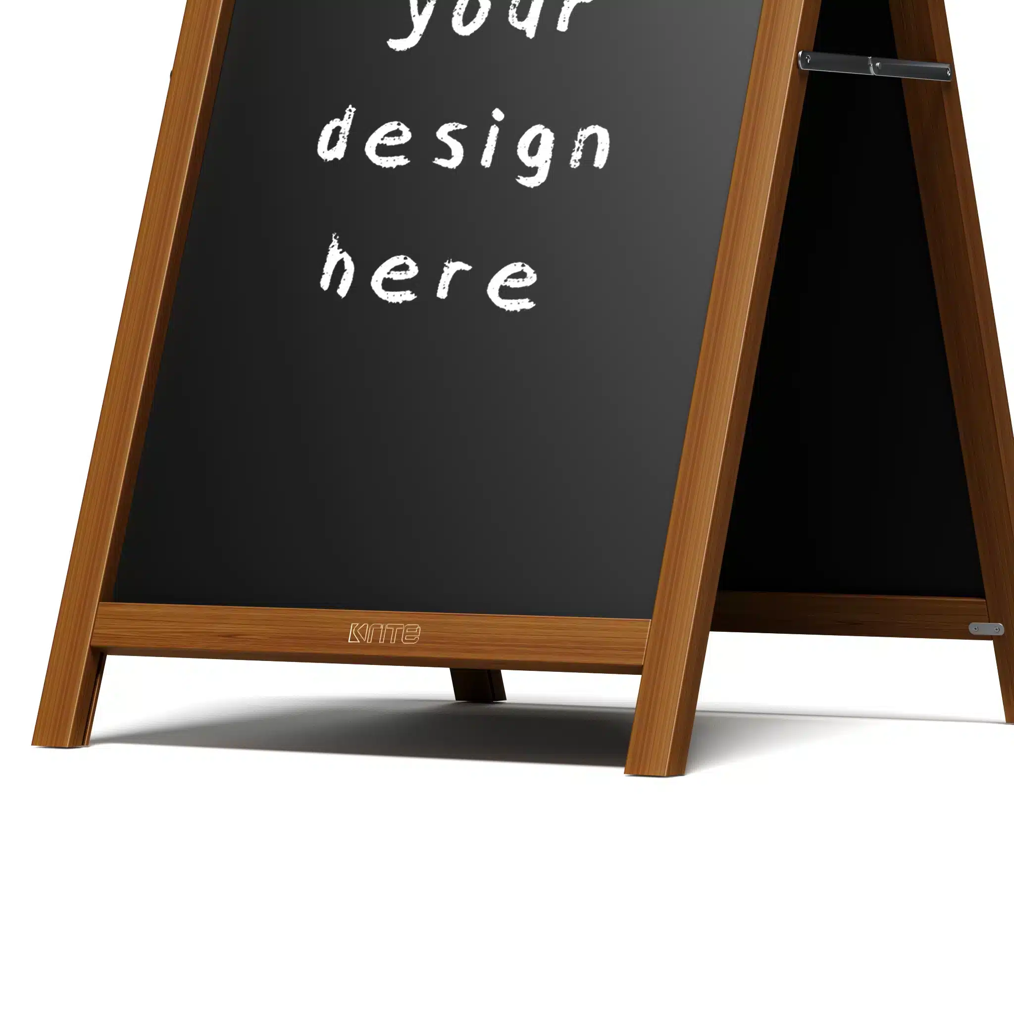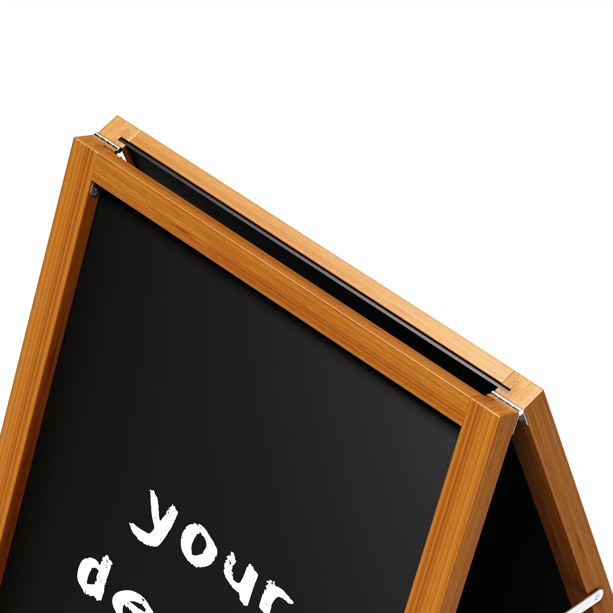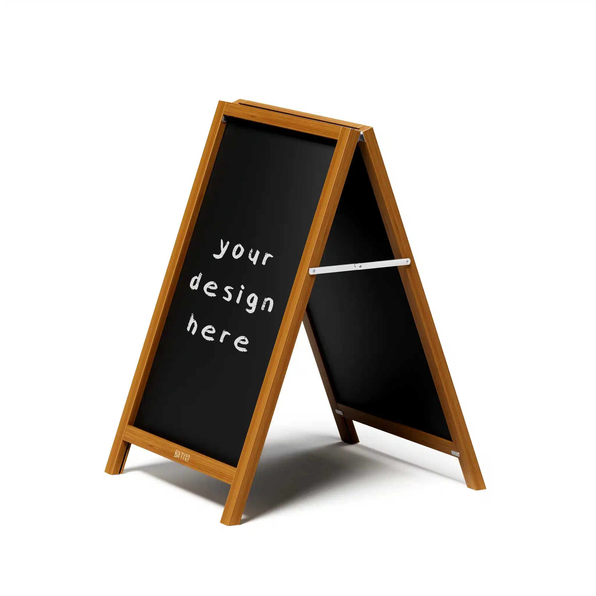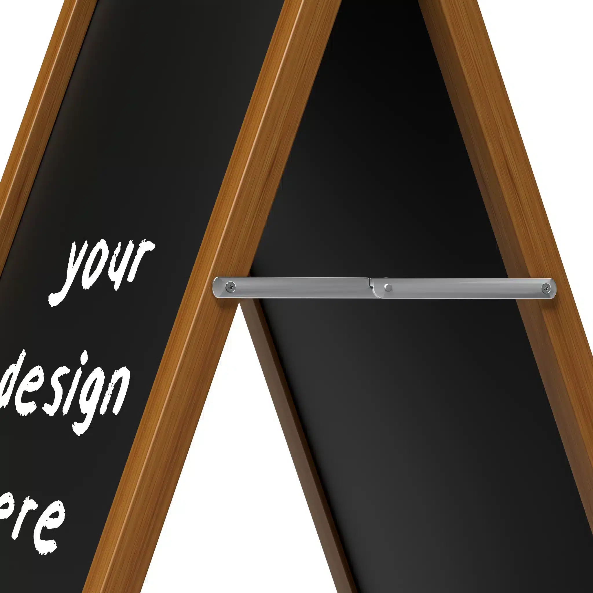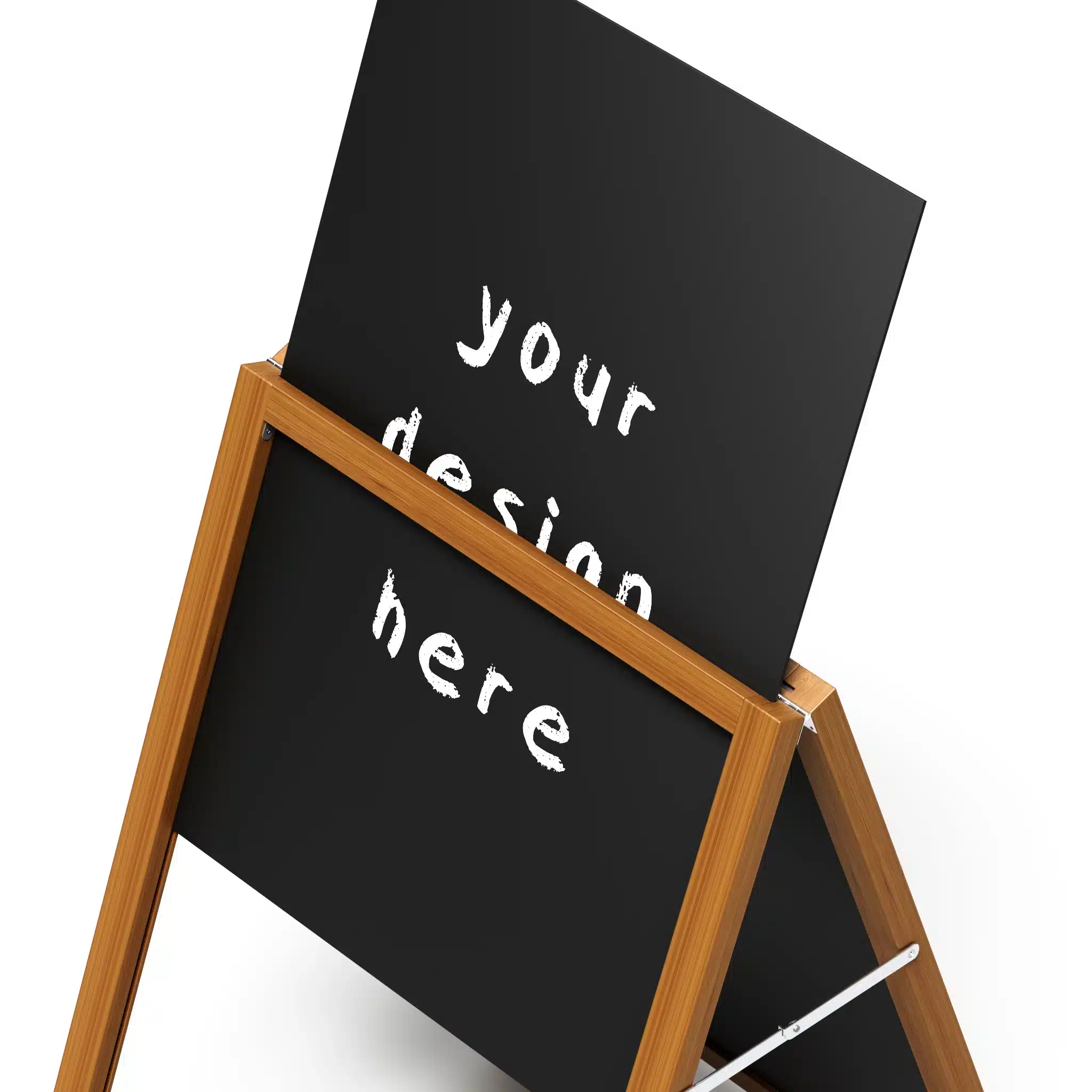 Crafted from solid pine with a 50mm x 35mm frame, it includes 2 (two) removable chalkboard panels but also supports 900mm x 600mmW inserts, including 5mm flutesheets. Reinforced with steel corner brackets and hinges, this A-frame stands up to heavy use without compromising on appearance or functionality.