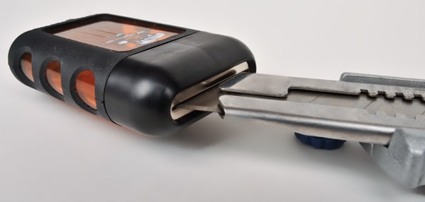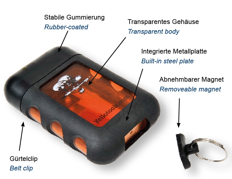 Its flat, rectangular design fits comfortably on belts, pockets or tool pouches using the integrated belt clip, while the rubber-coated housing provides impact resistance for use on site or in the workshop.
