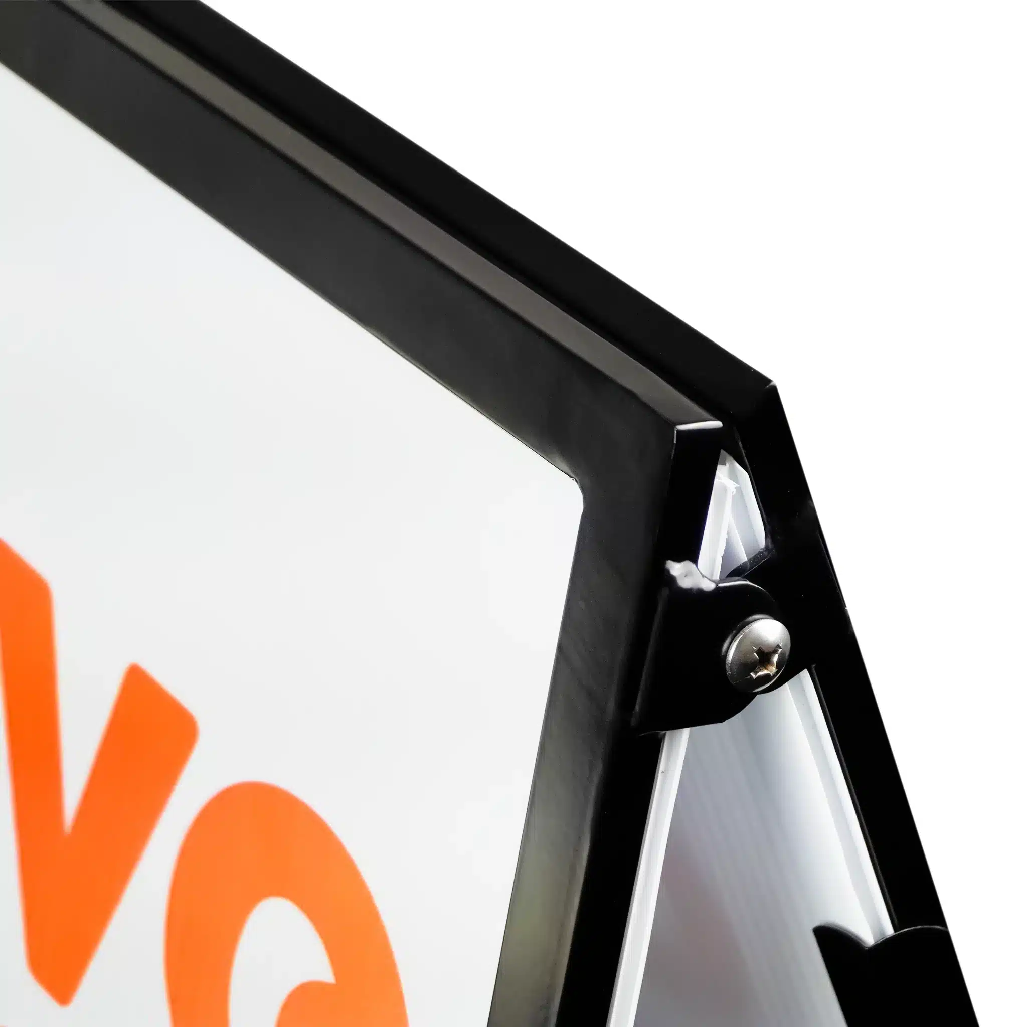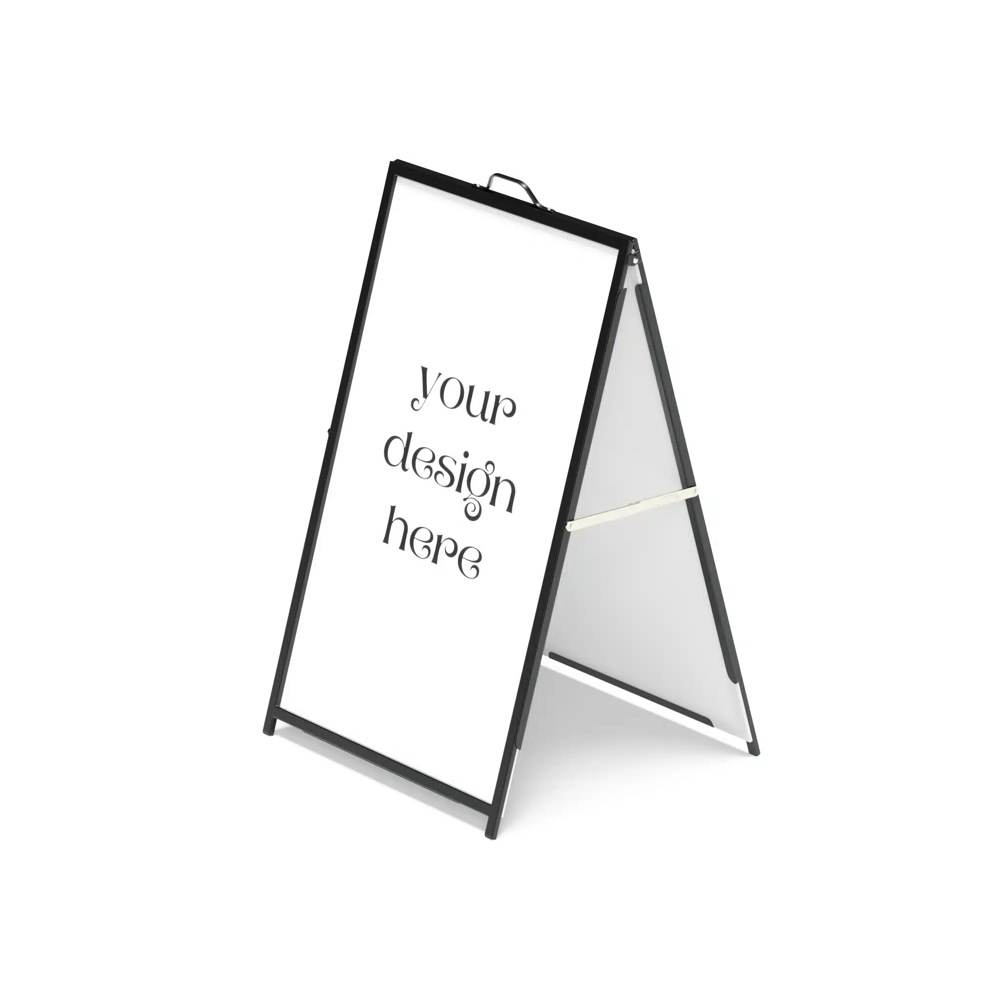 Each A-frame comes individually packaged, making it easy to dispatch to your customers. The frames are bagged to protect the coating during transit. The integrated handle ensures easy handling, while a strong welded hinge eliminates the chance of damage. It supports substrates ranging from 3mm to 5mm in thickness.