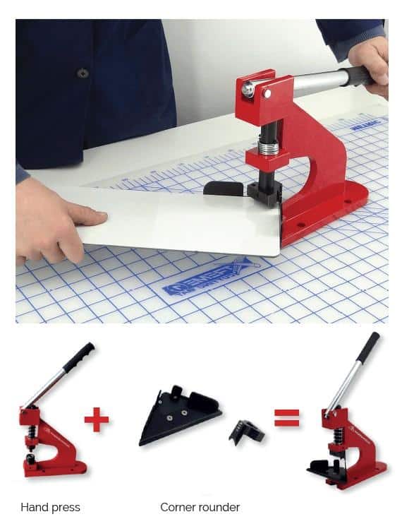 The Ultra Corner Rounder is the perfect accessory to round corners on different materials and is a perfect complement to our Portable Hand Press.
