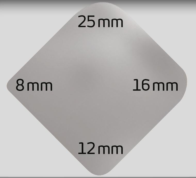 - Four different radiuses: 8, 12, 16 and 25 mm