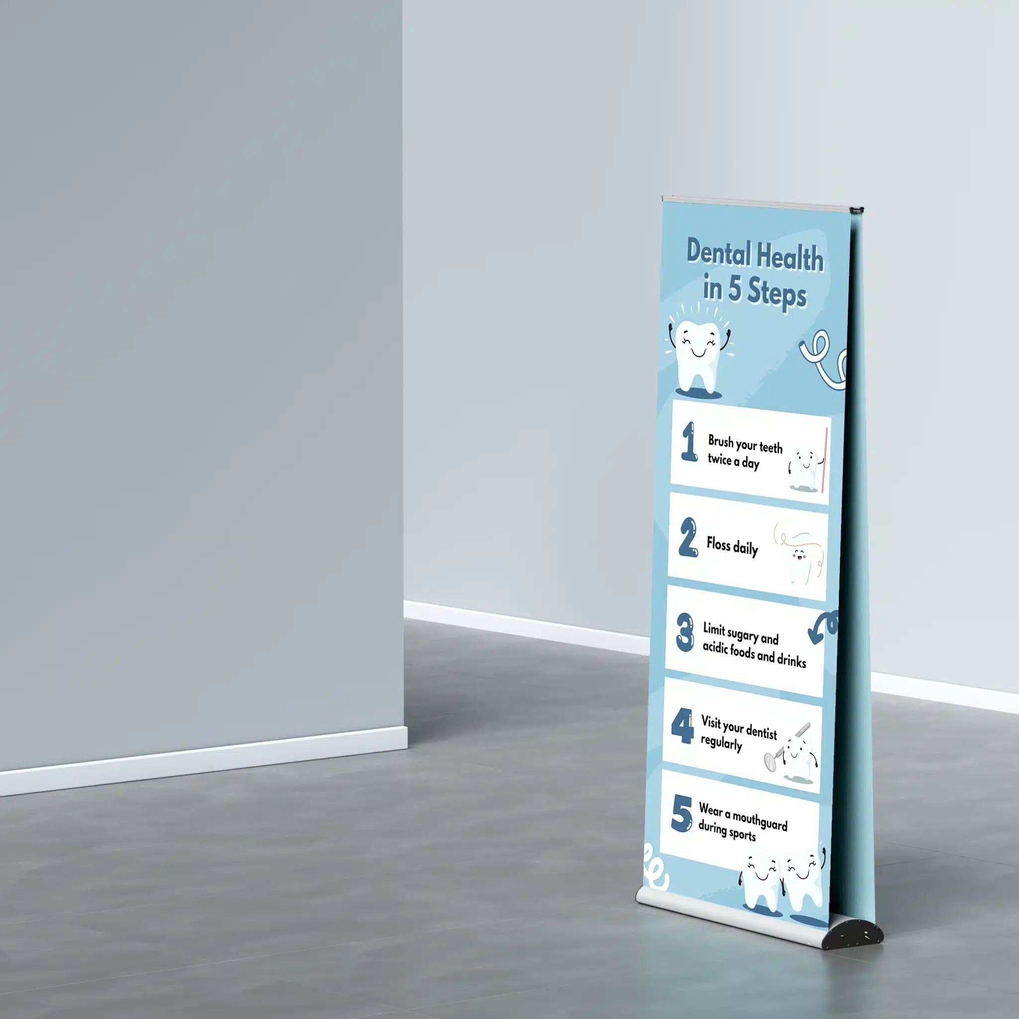 • Double-sided display for maximum visibility (850mmW x 2000mmH)