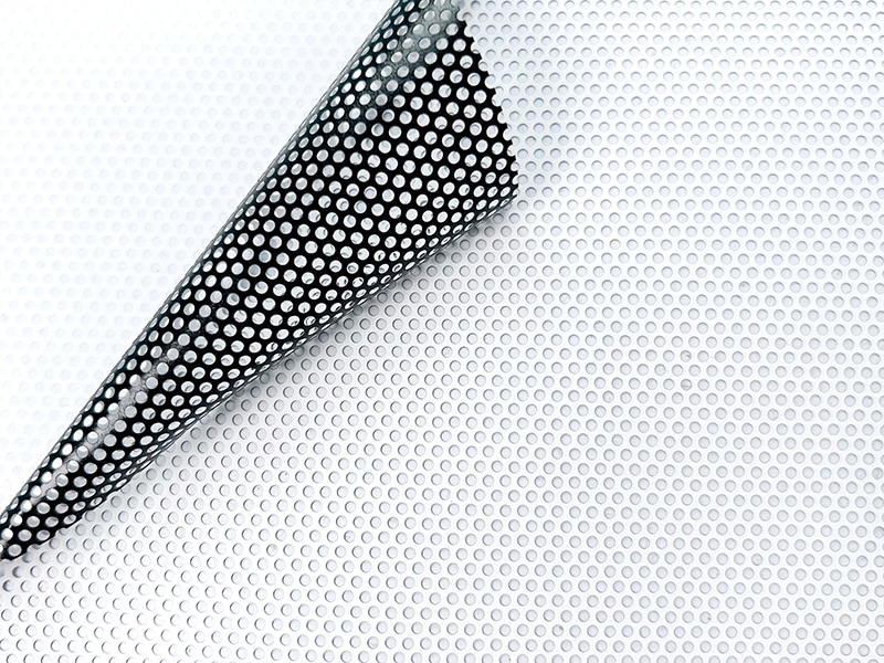 The EasyVision is a high-quality perforated one-way window film, 140-micron white film, featuring a 40% open area and 60% printable surface with 1.6mm holes. It has a black-backed, calendered structure, enhanced with a removable, pressure-sensitive adhesive. This film is expertly crafted for creating one-way viewing graphics, thanks to its strategically placed perforations that facilitate one-way vision. Offering outstanding print resolution and image clarity, EasyVision is an ideal choice for vibrant and sharp graphics.