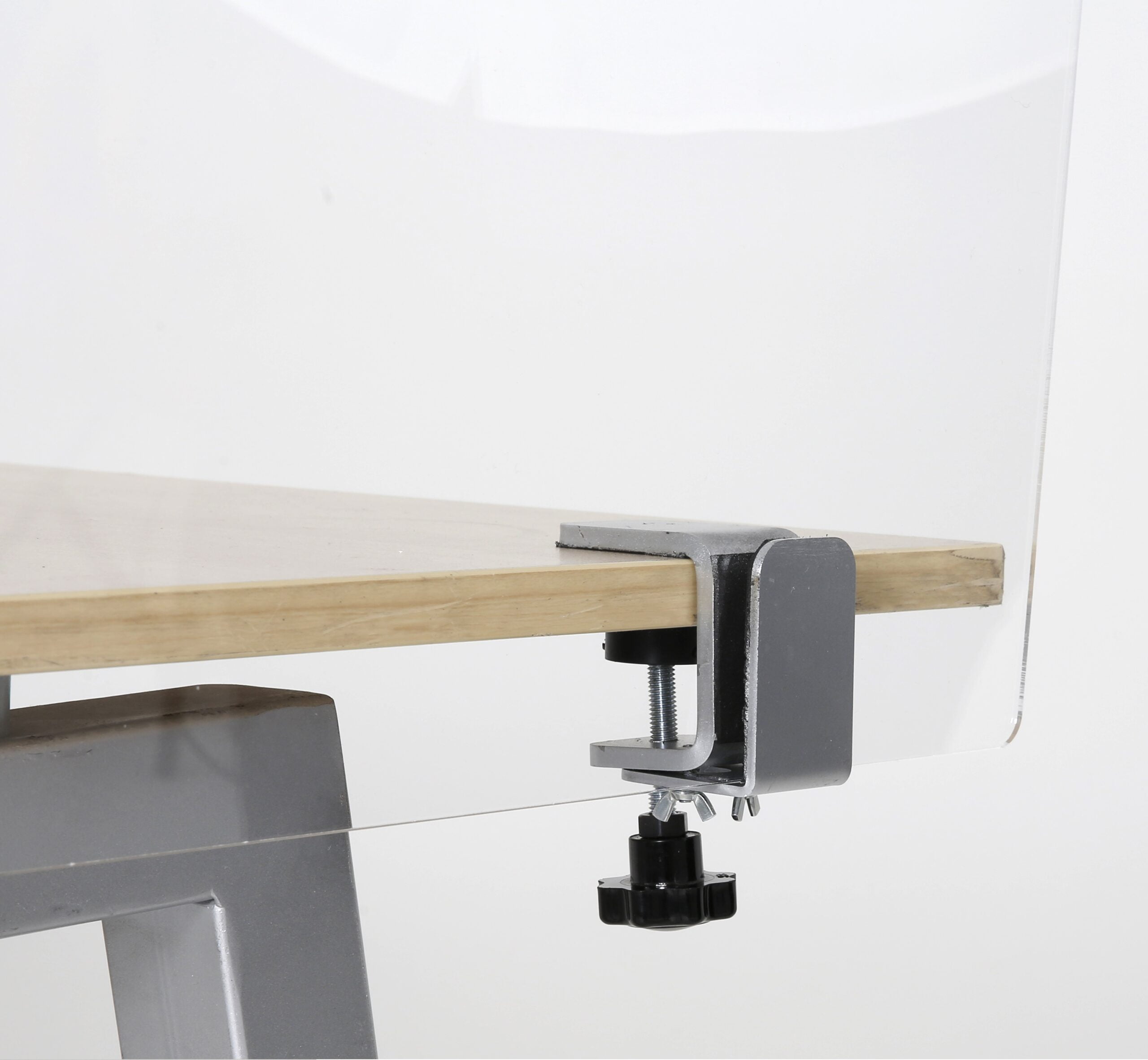 The Removable Edge Clamp Kit is the perfect solution for creating a protective barrier or holding signage at the front of a desk, table, or counter. Designed to fit surfaces between 6 mm and 40 mm thick, it offers versatile use in office spaces, cashier stations, and customer service counters.