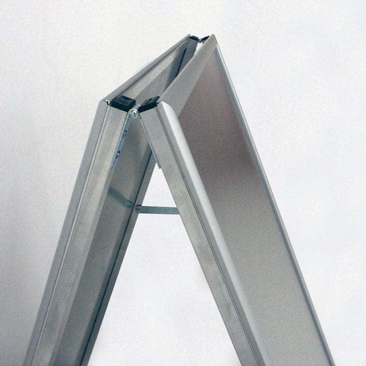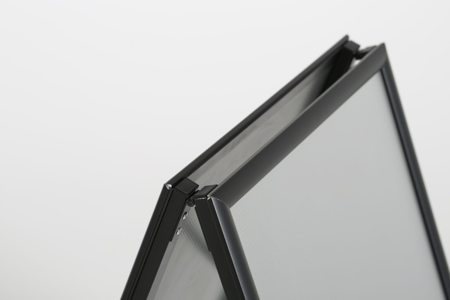 The Elite Indoor Snap A-Frame is a premium A-board designed for indoor applications. Available in sleek black and silver, and A1 and A2 sizes, this snap A-frame offers versatility for various display needs. It is made with a full aluminium body and PS poster backing, ensuring durability and stability. The 25 mm aluminium profile thickness allows it to hold posters up to 2 mm on each side, providing a double-sided display solution. Ideal for promoting events, sales, or informational signage.