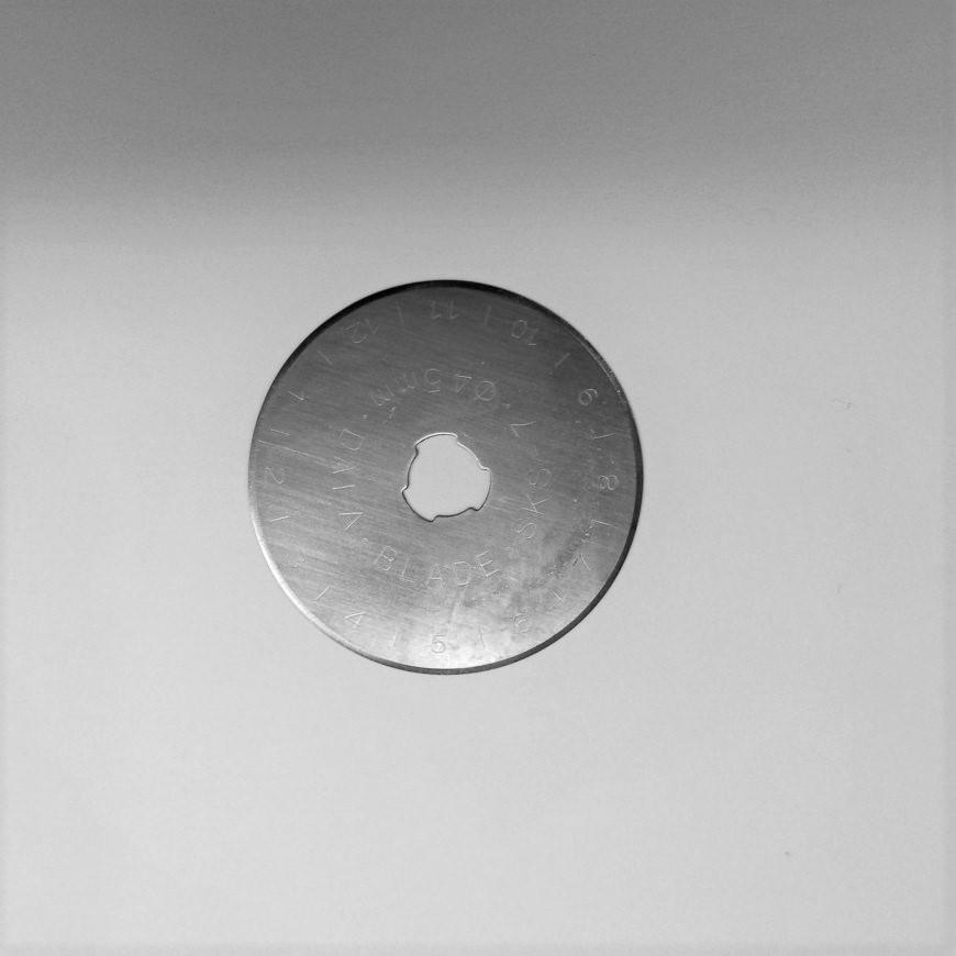 As standard, it comes with three blades: a utility blade (pack of 100), a textile wheel, and an acrylic scoring blade.