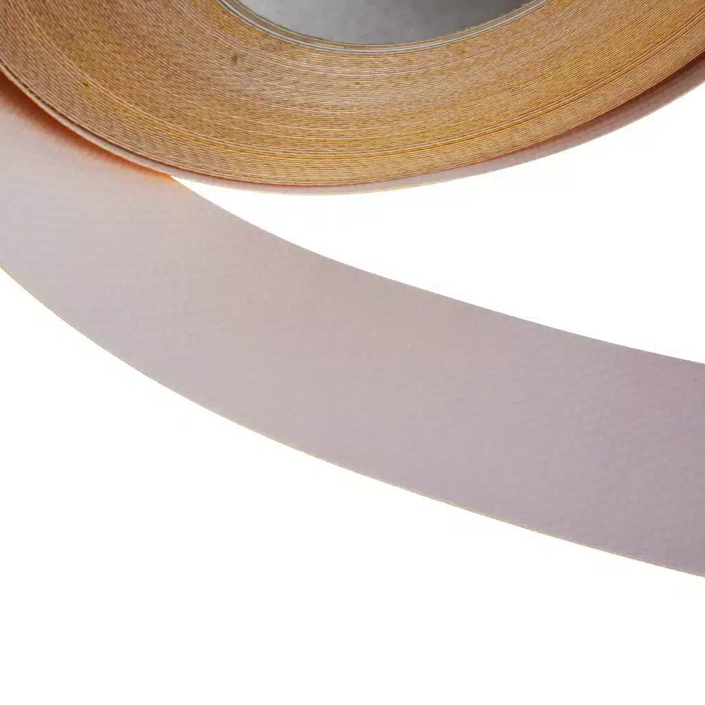 Express Tape, a premium single-sided banner reinforcement tape, boasts a pure polyacrylic composition renowned for its superior aging resistance. It excels in long-term durability, showing remarkable resilience against weathering and UV exposure. The adhesive quality of Express Tape is particularly effective on low surface energy materials, including foams, polyethylene, and polypropylene films. It is ideally suited for strengthening PVC print media like PVC sheets and banners, ensuring enhanced durability and performance.