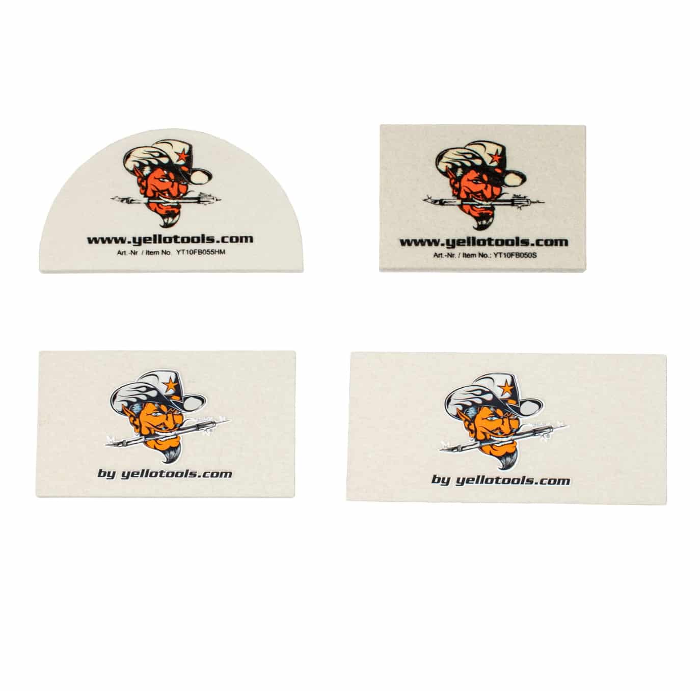 The YelloTools FeltBloc range is made from combed natural felt, providing a gentle yet effective solution for applying adhesive films on uneven, textured or riveted surfaces. These squeegees are essential for installations on walls, facades, and privacy films, offering excellent control without scratching the film surface.