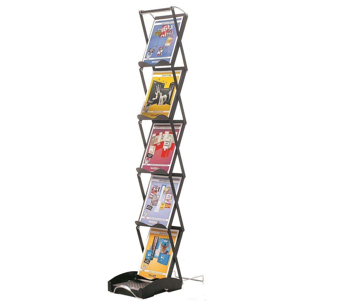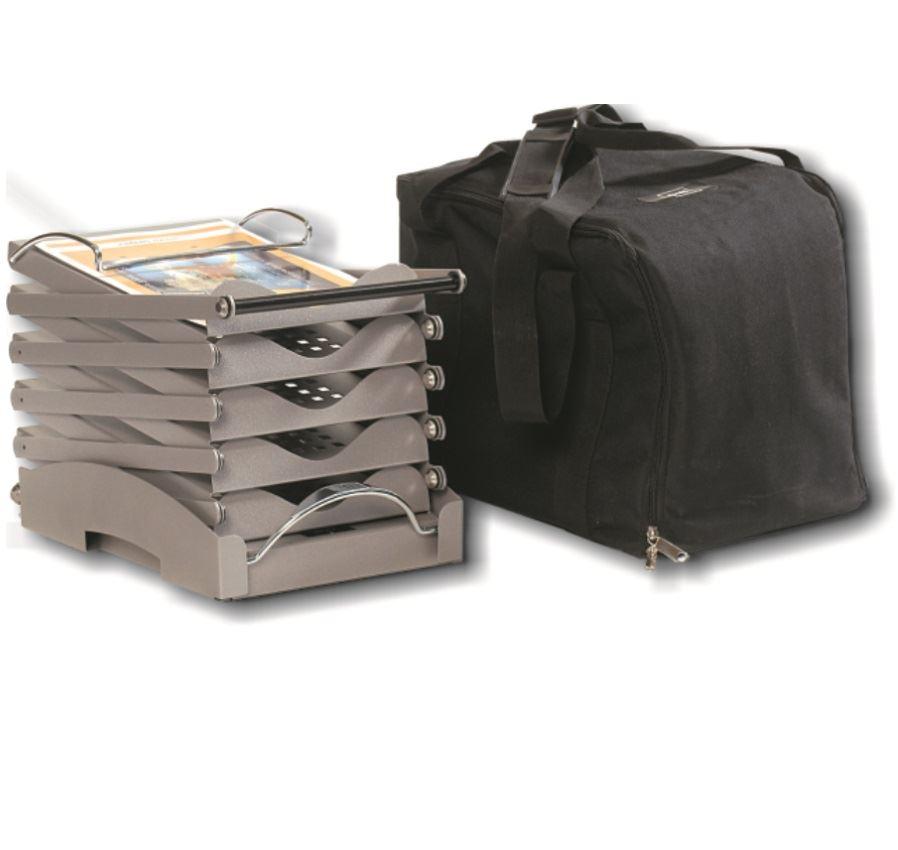 Our premium portable literature rack organises & displays brochures, flyers & catalogues in the most efficient & organised manner. The 5 shelf literature rack comes flat packed in a strong nylon bag & unfolds in seconds.