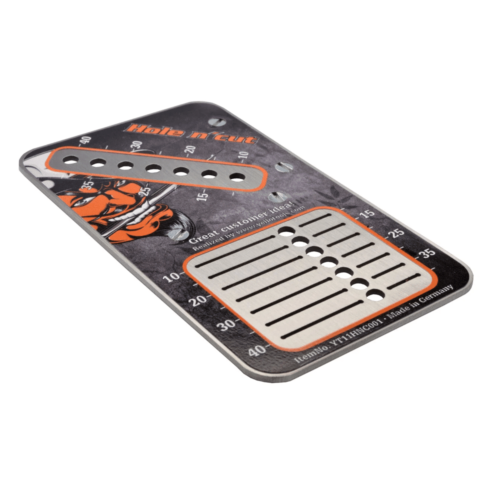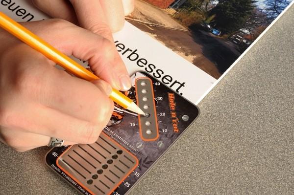 The Hole n’ Cut is a versatile tool that can function as both a drill hole and edge-cutting template made of stainless steel. Featuring a precise scale ranging from 15 to 40 mm, it enables you to effortlessly make either a straight cut or drill holes at an even distance. With this tool, you can easily measure and drill holes and edge cuts with up to 80 mm spacing, making it ideal for a variety of signmaking and crafting applications.