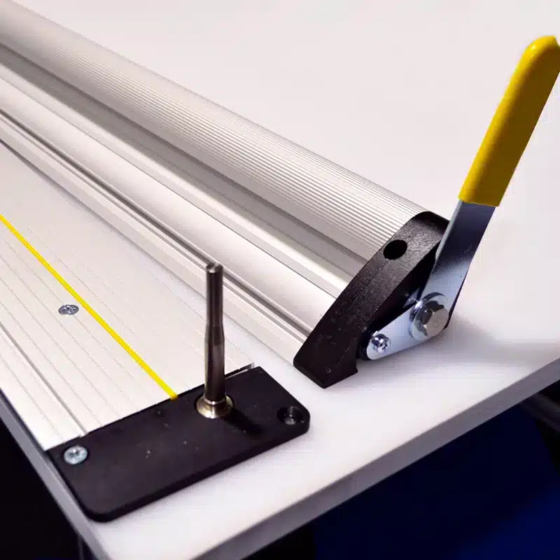 The cutter rail is positioned using two locating pegs and can be removed from its base station for use elsewhere.