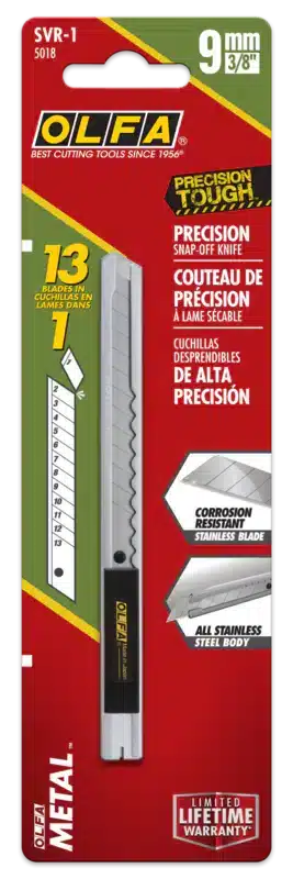 Whether you’re trimming vinyl, film, paper, or other light materials, the OLFA SVR-1 is the go-to cutter for professionals who need precision and portability in a corrosion-resistant format.