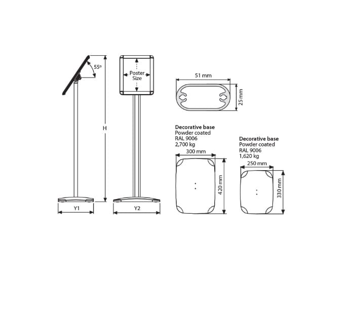 - One menu board with two positions as landscape and portrait