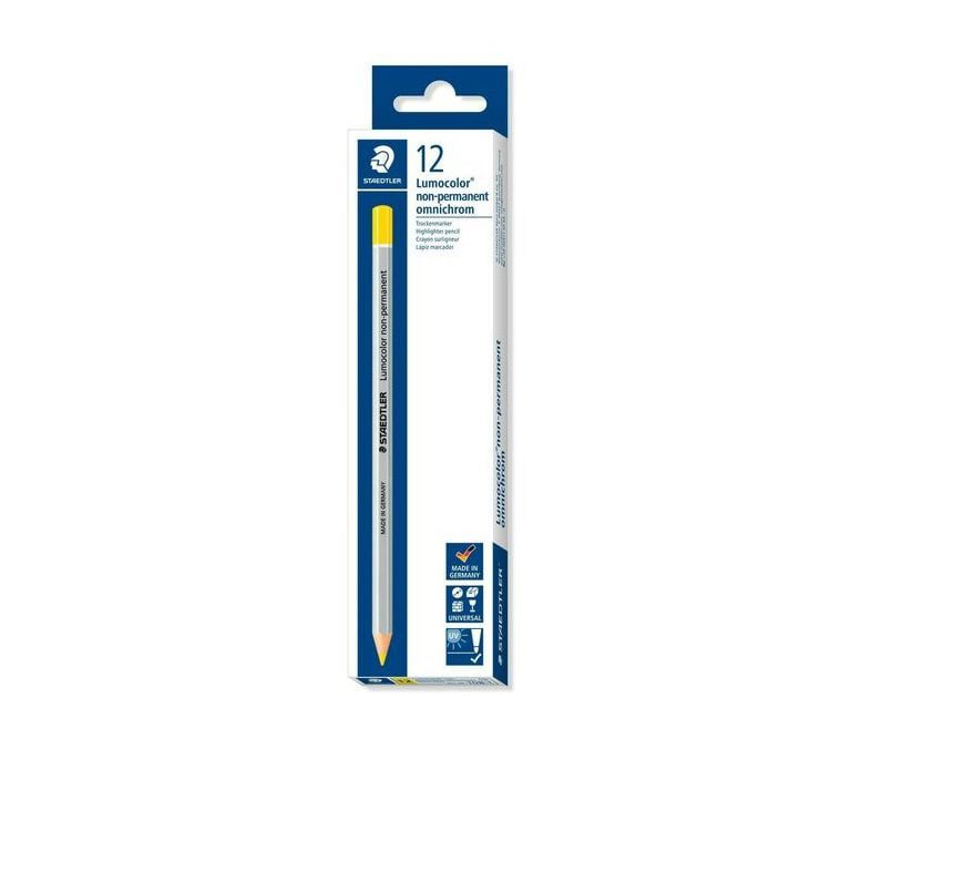 The Staedler Yellow Lumocolor® Non-Permanent Dry Marker is a versatile, wood-cased, water-soluble hexagonal pencil. It’s perfect for bright, opaque markings on various surfaces including paper, plastic, metal, glass, wood, leather, and stone. Especially vibrant on dark or transparent materials, its yellow colour stands out. The markings can be easily wiped off smooth surfaces and won’t bleed through paper. This tool is an asset for professionals in industry and trade, crafted from wood sourced from certified, sustainable forests.