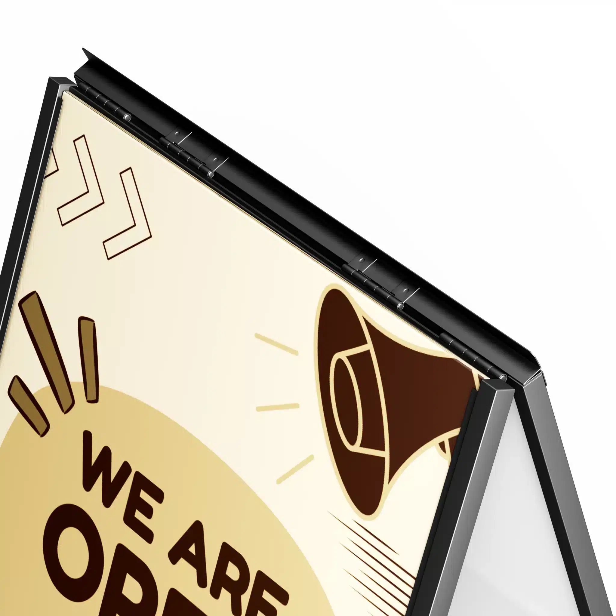 The Piazza Weatherproof Insert A-Frame is built for the outdoors and combines sleek design with smart functionality. Featuring a unique top flap lid, it shields the top edge of your inserted graphics from rain, dust and debris — extending the life of your signage without compromising on visibility or style.