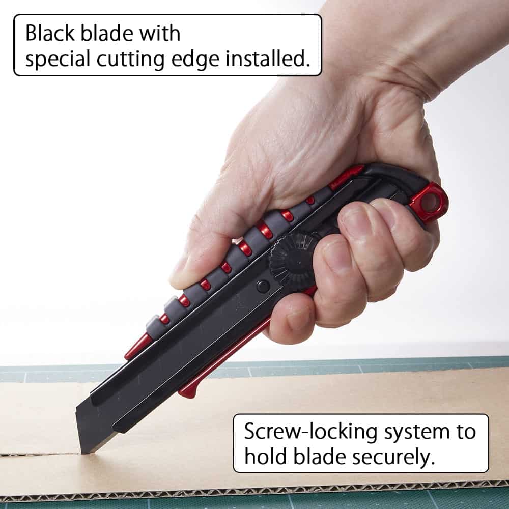 It comes equipped with a premium extra-sharp black blade and an integrated blade snapper.