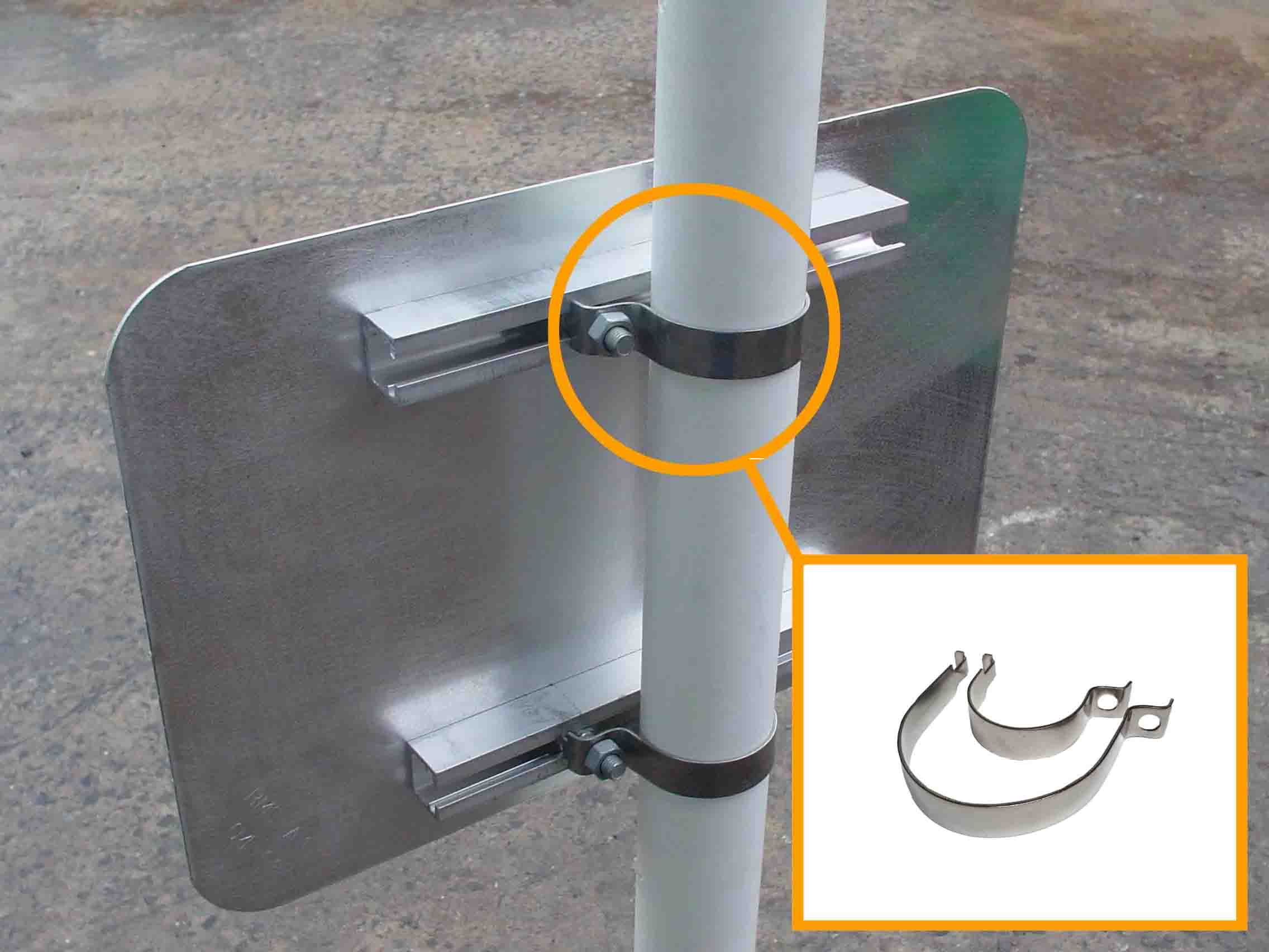 The Stainless Steel Pole Saddle Brackets are made to mount signage connected to a channel onto a post or pole or Circular Hollow Section (CHS).