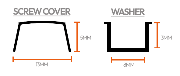 The QuikSnap Screw Covers have an outside diameter of 1/2″ and work with screw sizes from #6 and #8 screws (M3 and M4).