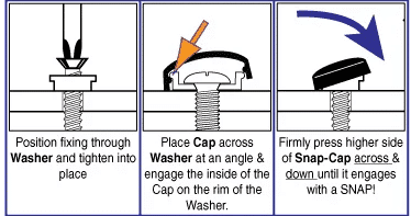 The base washer holds the screw in place as the cap “snaps” onto it. The QuikSnap offers a reliable seal and can shield the fastener head while avoiding corrosion and rust.