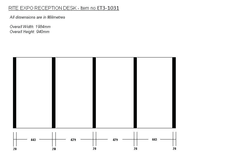 ET3-1031 Rite Expo Reception Desk, 1200W x 370D x 960Hmm, 10kgs Login or Register to view prices.