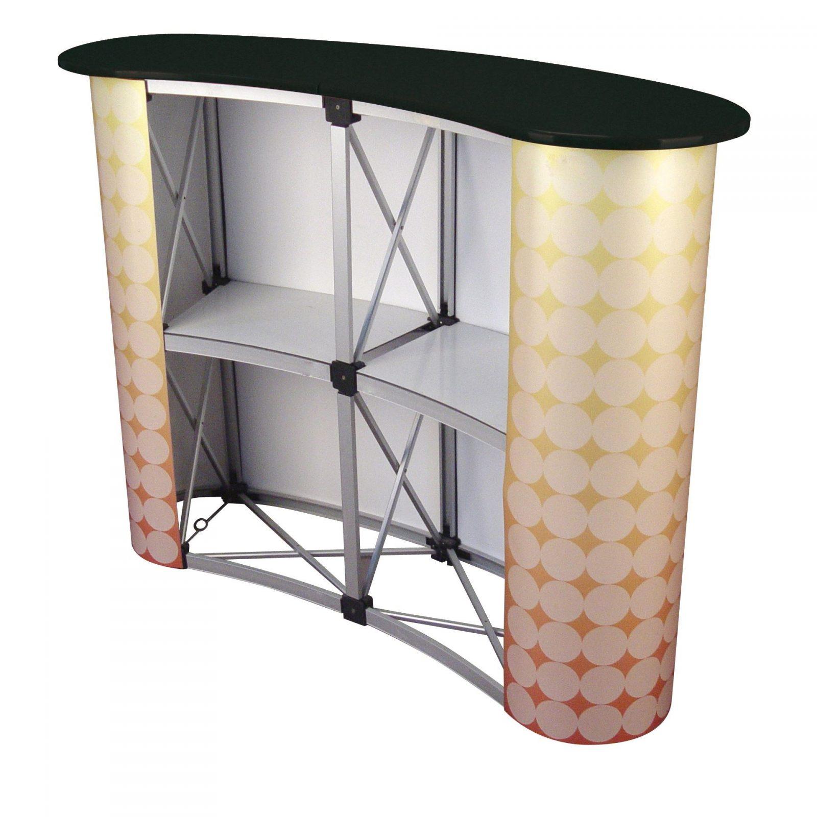 The Rite Expo Reception Desk is a portable trade show or expo counter that can also function as a vendor site in stores and supermarkets. Pop-up counters are so-called because they only take a few minutes to set up and they also come with carrying bags for easy transport. The counter’s widest area is 1200 mm, where multiple laptops or screens can be placed.