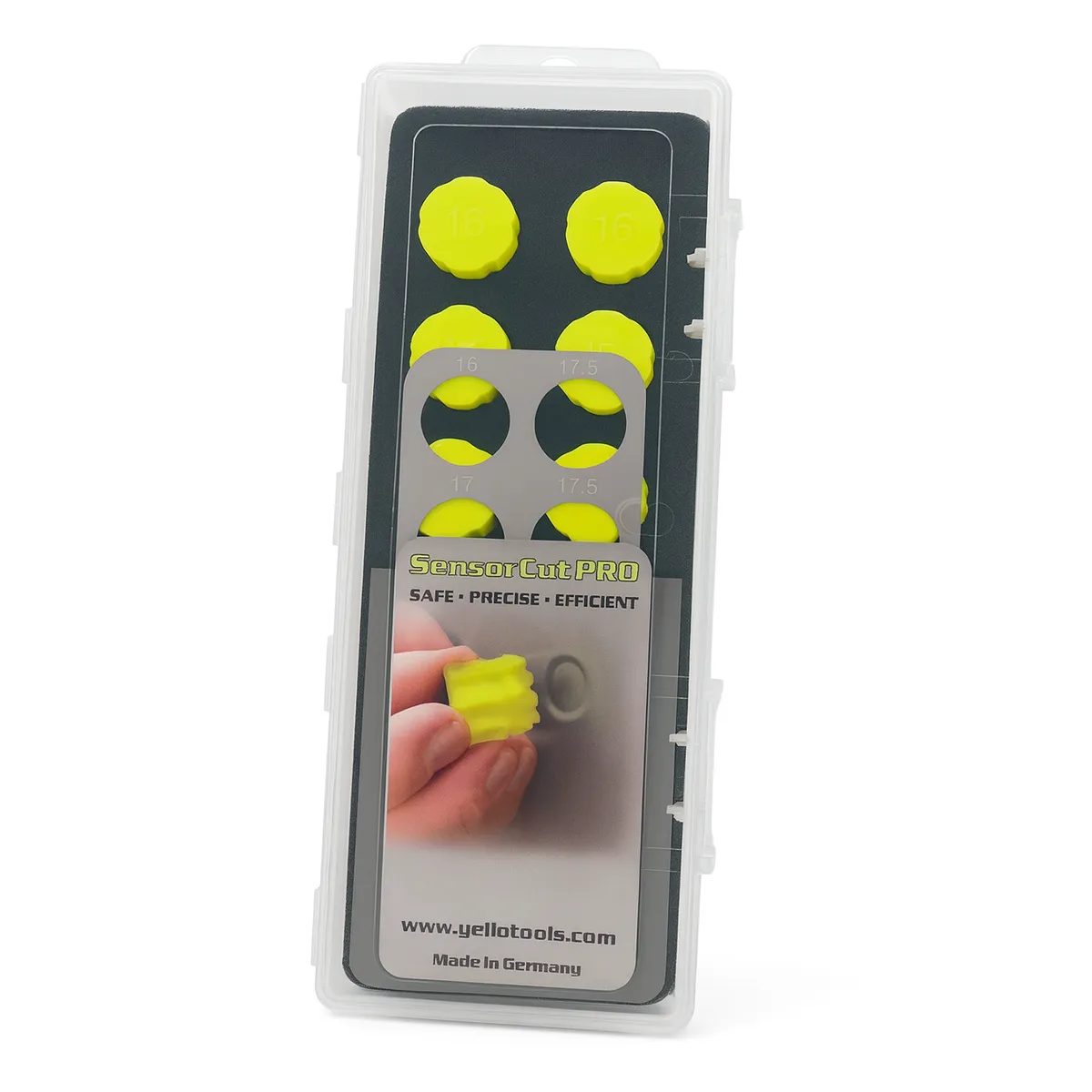The SensorCut Pro by YelloTools is a two-piece tool set engineered for vehicle wrap professionals who value precision, speed, and safety. Designed to eliminate the need for knives on painted surfaces, this system allows installers to wrap and cut out bumper sensors quickly and cleanly — reducing installation time by up to 90 % while removing the risk of paint damage completely. It includes: