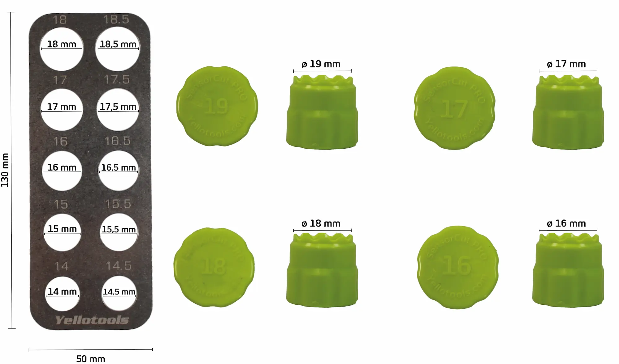 The SensorCut Stencil is used for creating inner sensor cut-outs with exact precision. Constructed from stainless steel, it provides a safe, consistent cutting guide. Offered in ten sizes from 14.0 mm to 18.5 mm, it guarantees full coverage and flawless alignment on every wrap.