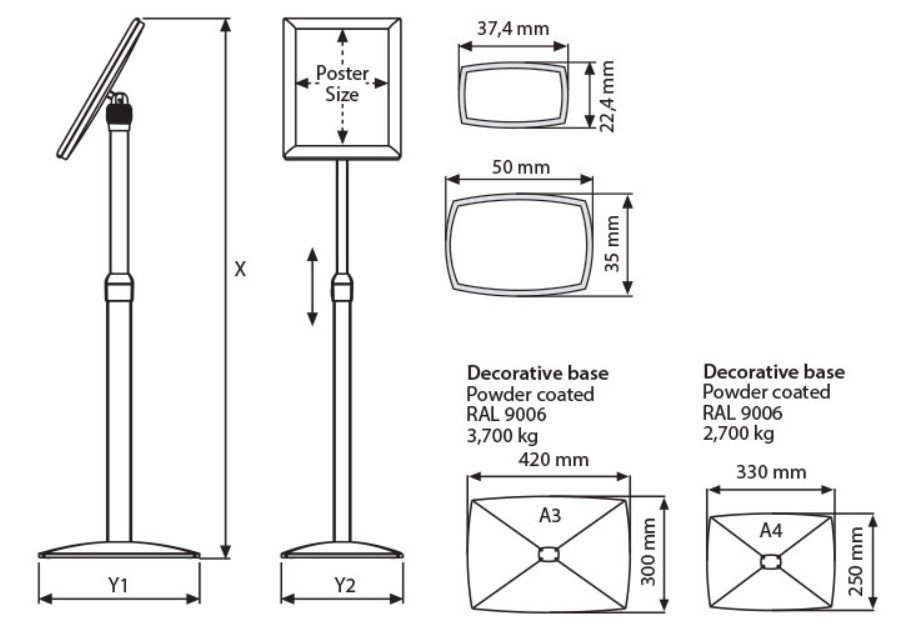 These pedestal displays are available in both A4 and A3 and you can adjust the snap frame to make it either landscape or portrait.