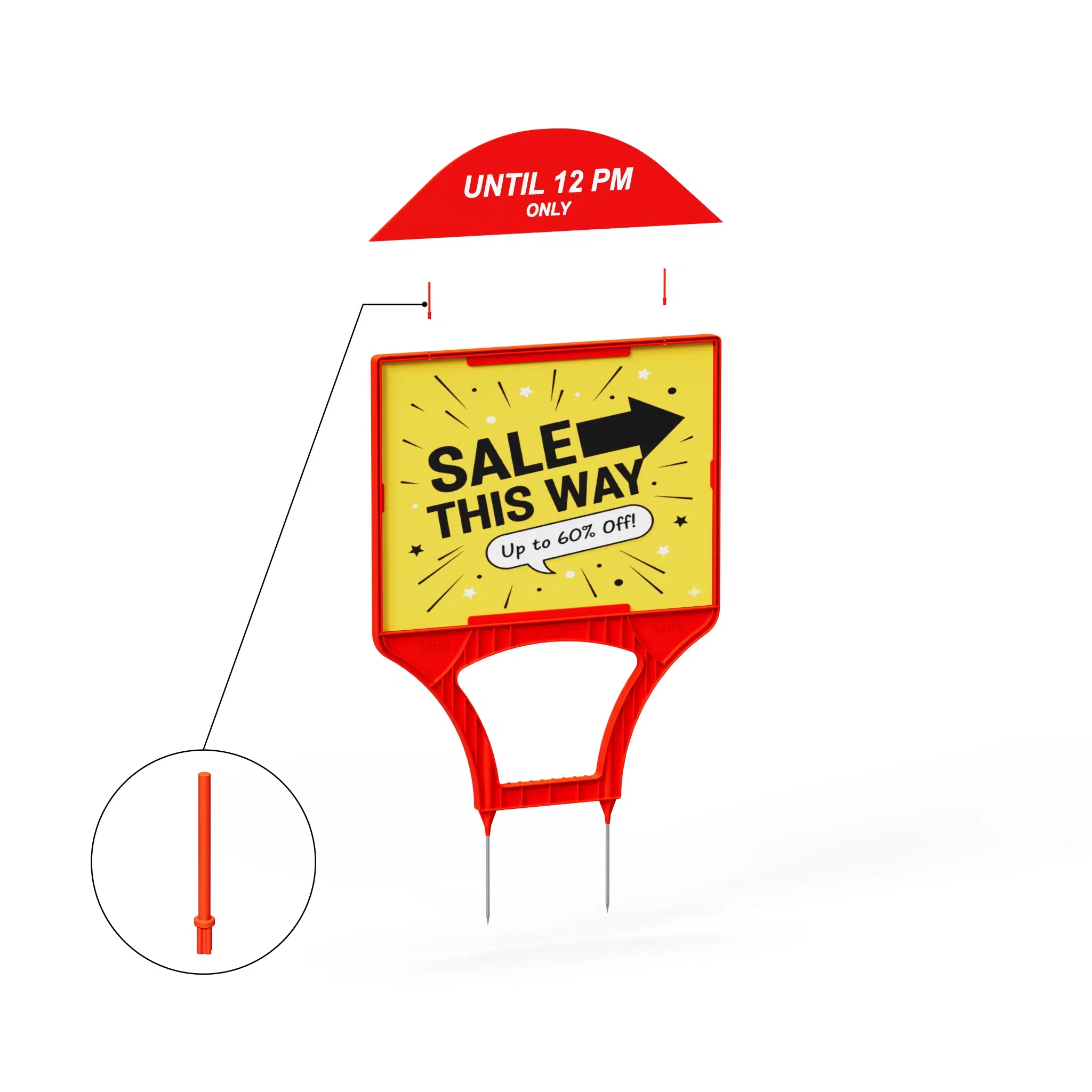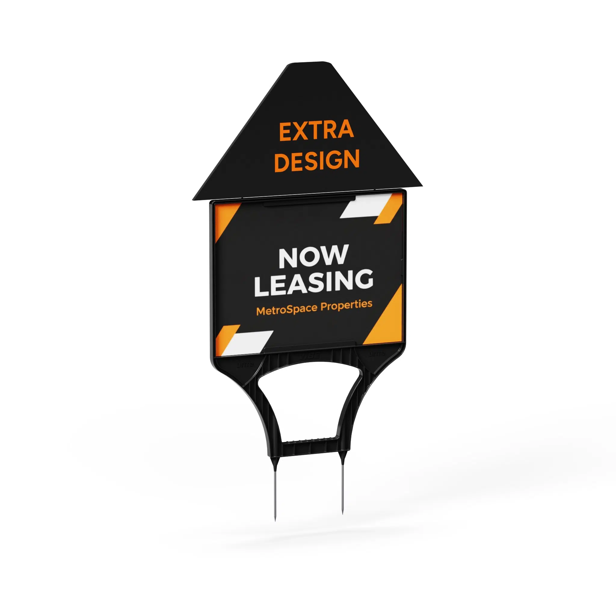 The Vibe Lawn Sign Frame is a bold and practical display solution designed for real estate professionals who value impact and convenience. Constructed from durable ABS plastic with stainless steel ground spikes, the Vibe combines lightweight portability with strong, long-lasting performance.