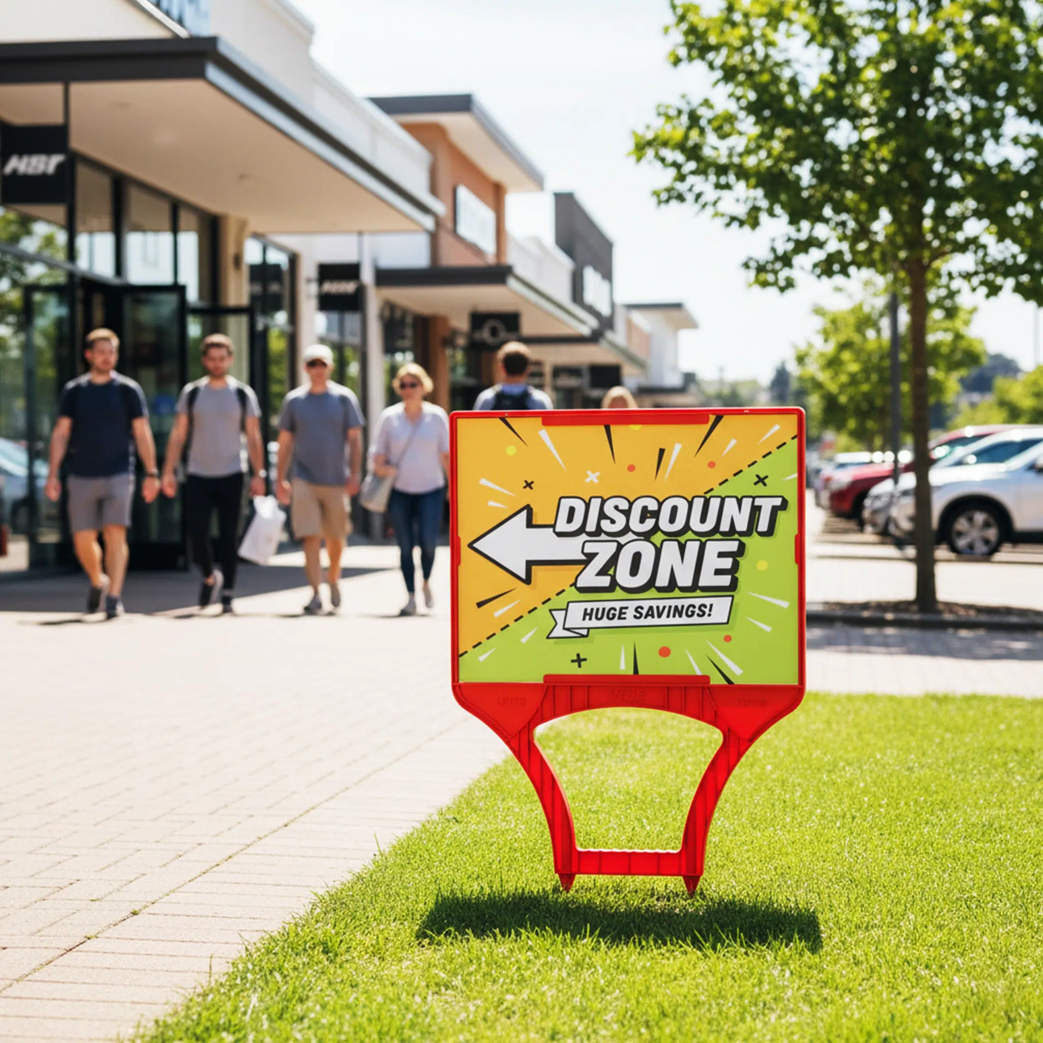 Each frame is available in five vibrant colours — white, yellow, red, black, and blue — allowing agents and businesses to match branding or stand out in any setting. For added versatility, the Vibe includes header spikes that make it easy to attach a top header sign for extra messaging or branding (recommended header height up to 150mm).