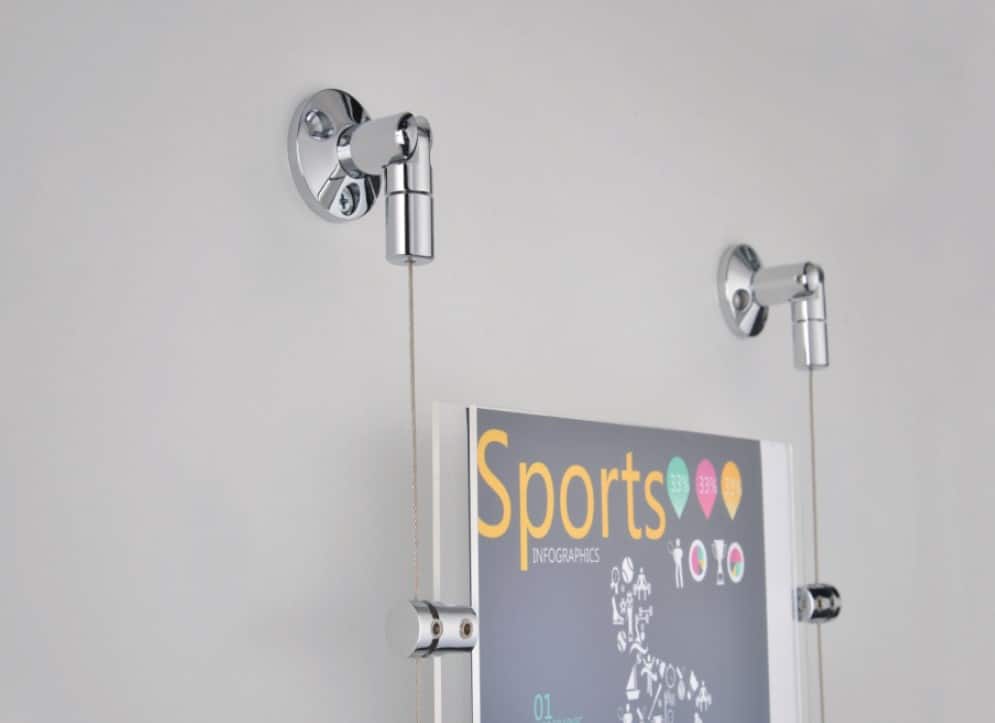 Create vertical displays without ceiling cables with our Wall To Wall Display Cable Kit. Perfect for attaching hanging brackets and poster holders.