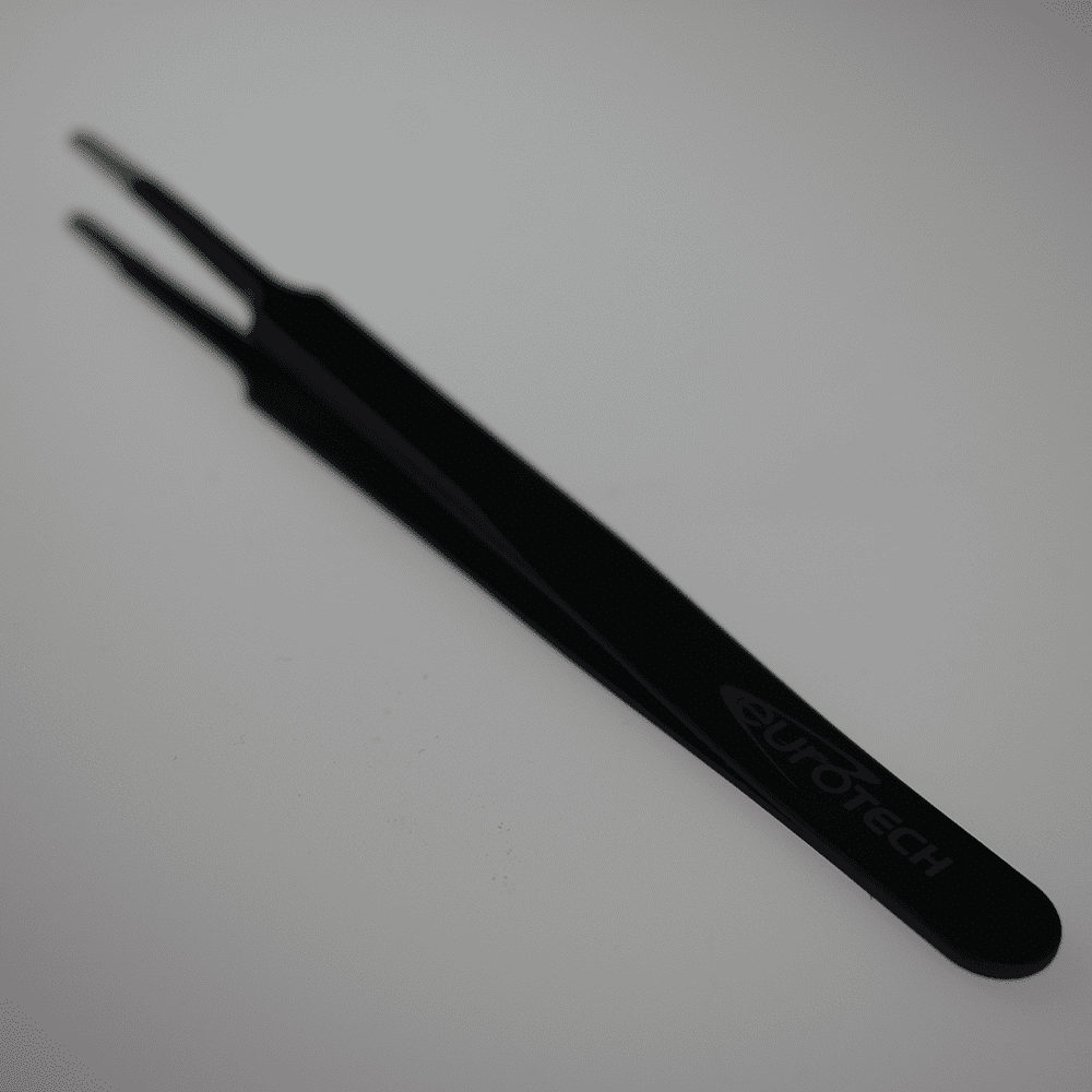 Our Weeding Tweezer is made of stainless steel with a plastic coating to help handle this tool.