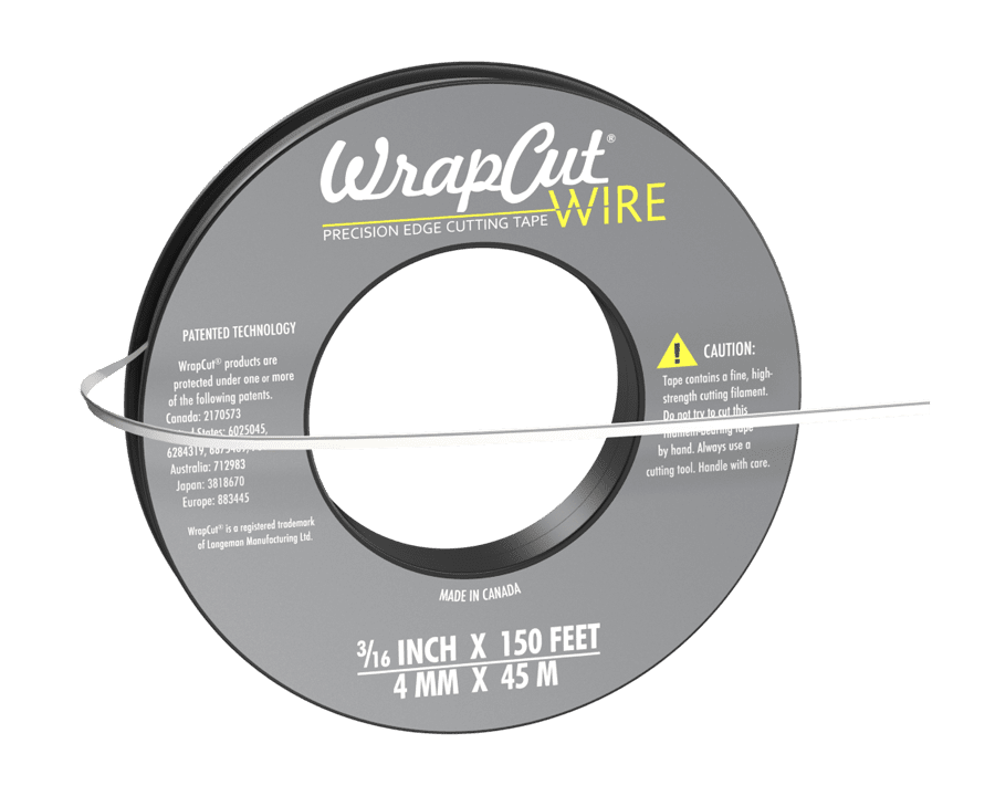 WrapCut® Fine Filament Tape is the best alternative to a metal blade for making precise trim lines through most printed vinyl and protective film products including paint and epoxy coatings. This innovative tape was designed to meet the needs of those who demand excellence with every project. With a small diameter cutting filament located at the outside edge of the tape, WrapCut enables easy trim line location producing a perfect cut, where you want it, every time. WrapCut not only produces impressively straight trim lines but also conforms contours and angles. WrapCut is supplied on ergonomic protective plastic spools for easy handling and application to your entire project.